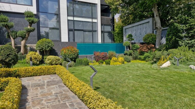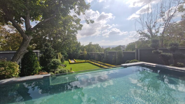 استخر شیشه‌ای این ویلا با دیواره شفاف خود، مرز میان آب و باغ را محو کرده و منظره‌ای پیوسته با طبیعت را چون تابلویی زنده و آرام جلوه می‌دهد.