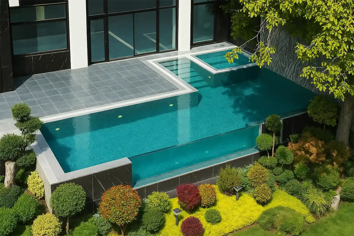 استخرهای بینهایت به دلیل لبهی لبریز خود، بیشترین سطح تماس با هوا را دارند و همین عامل تبخیر را افزایش میدهد. برای کاهش این پدیده، استفاده از پوششهای محافظ شفاف (Transparent Covers) یا شیشههای سقفی متحرک پیشنهاد میشود. این پوششها ضمن حفظ ظاهر لوکس استخر، دمای آب را ثابت نگه میدارند و تبخیر را تا ۳۰ درصد کاهش میدهند.